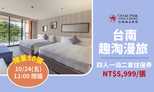 2025台南趣淘漫旅 豪華景觀房一泊二食住宿券 每張NT$5,999