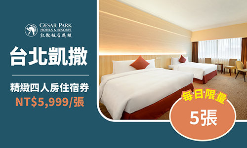 2025台北凱撒 精緻四人客房住宿券 每張NT$5,999