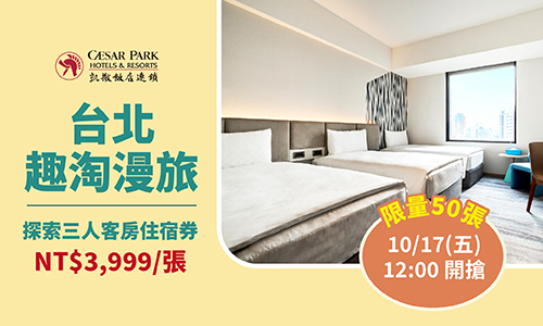 2025台北趣淘漫旅 探索三人客房住宿券 每張NT$3,999