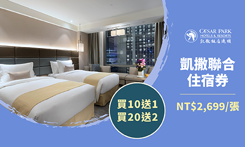 持本券於優惠期間內,可依指定張數任選凱撒飯店連鎖9 家飯店入住。